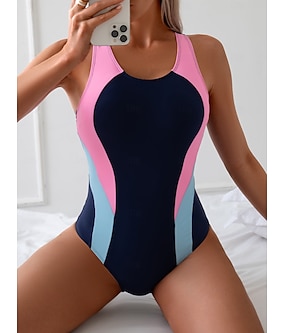 Kvinnors endelad baddräkt slankande färgblock monokini trosor magkontroll hög midja slank rygglös semester vintage ombre grafisk U-hals ärmlose baddräkter