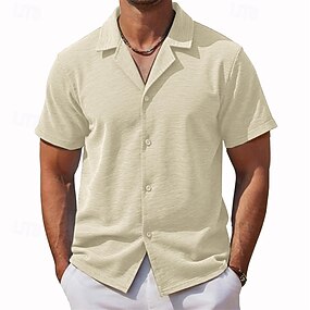 Herr Skjorta Casual skjorta Knapp upp skjorta Svart Vit Gul Aprikos Grå Kortärmad Slät Nedvikt Ledigt Dagligen Ihålig Kläder Elegant Mode Ledigt Strandstil