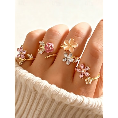 Damringset med blomstermotiv i legering – elegant design med rosa och klara kristaller, perfekt för både vardagliga och formella tillfällen