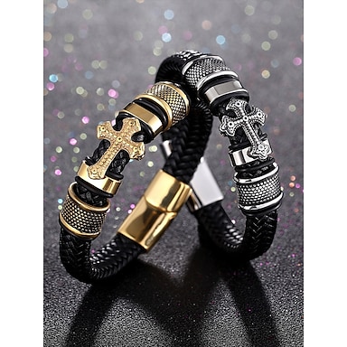 korsarmband för män med guld- och silverdetaljer och magnetlås – snyggt flätat armband för vardagligt och religiöst klädsel