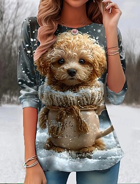 Dam Tunik T-shirt Grafisk Djur Vintage Stilig Klassisk Lång Ärmar Rund Hals Vanliga Toppar Daglig Tryck Vit Blå Grå Vår Höst Förvår