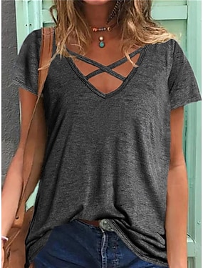 Dam T-shirt Utklippt Slät Ledigt Kortärmad V-hals Vanliga toppar Dagligen Helgen Armégrön Grå Sommar