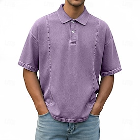 Herr Pikétröjor Golftröja Ledigt Gata Kavajslag Kortärmad Grundläggande Modern Slät Knappar Sommar Vår Normal Svart Rodnande Rosa Blå Purpur Brun Grön Pikétröjor