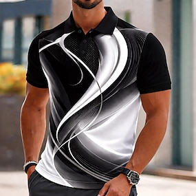 Herr Geometrisk Linje Pikétröjor Kortärmad Polotröjor Skjortor med krage Ledigt Fritids- Knappar Sommar Vår Blå Svart Purpur