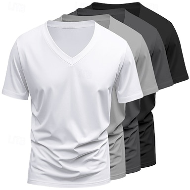 5 st. herr-t-shirts, kortärmad, kortärmad, v-ringad, sommar, alla årstider, enfärgad, enkel, enkel, avslappnad, 5-delad, flerpack, semester, gata, avslappnad, vit topp, t-shirt för män