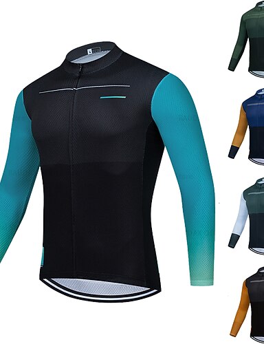 Herr Cykeltröja Grafisk Lutning Långärmad Cykel Överdelar med 3 bakfickor Bergscykling Vägcykling Snabb tork Reflexremsa Bakficka Fuktabsorberande sporter Blå Mörkgrön Orange Kläder