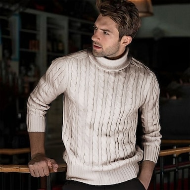 Herr Pullover tröja Stickad tröja Ribbad Kabel Sticka Vanliga toppar Stickat Slät Polokrage Mode Ledigt Semester Dagliga kläder Kläder Höst vinter Kamel Vin M L XL