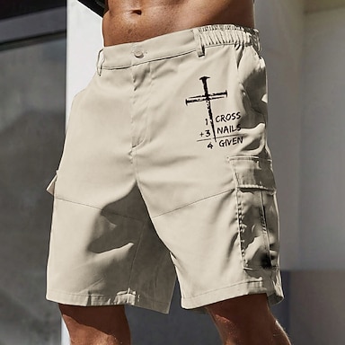 Herr Cargo-shorts Arbetsshorts Elastisk midja Flera fickor Bokstav Kors Knelängd Utomhussport Ledigt Camping och vandring Klassisk Shorts Svart Armégrön Microelastisk