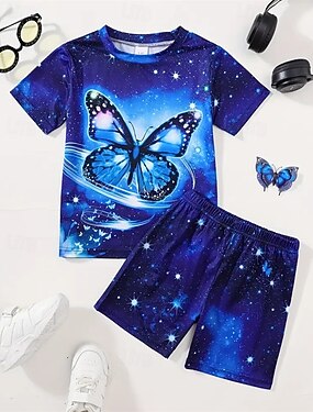 Flickor 3D Fjäril T-shirt och shorts Set Kortärmad Sommar Vår Sport Mode Dagligen Barn 4-12 år Rund hals Utomhus Semester Sport Skräddarsydd passform