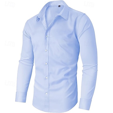 Herr Skjorta Satinskjorta Knapp upp skjorta Balskjorta Slät Företag Bröllop Svart Vit Gul Rubinrött Långärmad Nedvikt Alla årstider Kläder