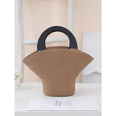 Damvävd halmväska, flerfärgad handväska med stor kapacitet, avslappnad strand- och resortväska för semester, daglig användning och utomhusaktiviteter