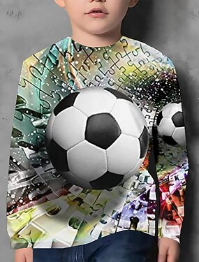 Pojkar 3D Grafisk Lutning Fotboll T-shirt Långärmad 3D-tryck Sommar Vår Höst Sport Mode Streetwear Polyester Barn 3-12 år Utomhus Ledigt Dagligen Normal