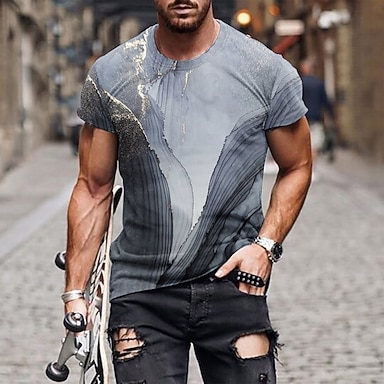 Herr T-shirts Kortärmad tröja T-tröja Kortärmad Rund halsringning Vår & Höst Mönster Mode Designer Mönster Semester Gata Utekväll Vin Svart Blå Topp t-shirt för män