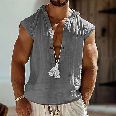 Herr Linne Undertröjor Ärmlös tröja Ärmlös Huva Sommar Slät Mode Designer Grundläggande Knappar Semester Gata Utekväll Svart Marinblå Grön Topp t-shirt för män