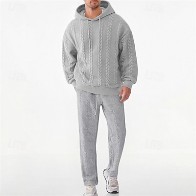 Herr Huvtröja Träningsoverall Huvtröja & byxor Outfit set Set med huvtröjor Luvtröja Utomhus Dagligen Sport Jacquard Snörning Ficka Slät Svart Orange Kaki Polyester Sportkläder Mode Streetwear Vår