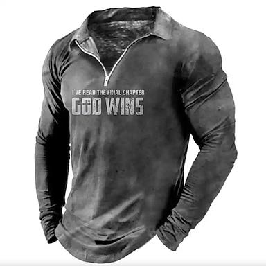 Herr långärmad kvart zip polo skjorta med 'Jag har läst det sista kapitlet Gud vinner' tro grafisk