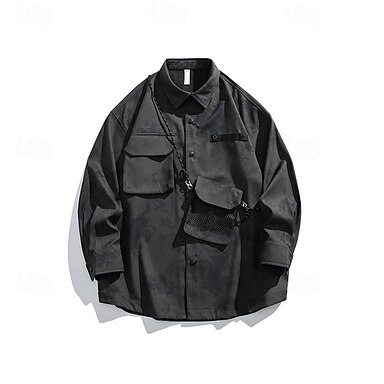 Herr Träningsoverall Skjorta Skjortor & Byxor Uppsättning Kavajslag Utomhus Semester Dagligen Snörning Ficka Slät Svart Kaki Armégrön Sportkläder Sport Mode Höst