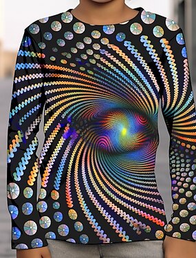 pojkar 3D-grafik optisk illusion t-shirt långärmad 3D-tryck sommar vår höst sport mode streetwear polyester barn 4-12 år utomhus casual daglig normal passform