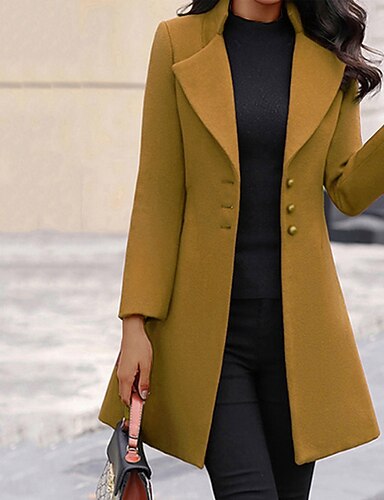 Dam Kappa Arbete Gata Handla Höst Vinter Lång Täcka Normal Håller värmen Andningsfunktion Samtida Stylish Formell Jacka Långärmad Slät Med fickor Med bälte Svart Vit Gul