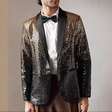 Herr Kavaj Företag Cocktailfest Bröllopsfest Mode Ledigt Vår Höst Polyester Lutning Paljetter Ficka Bekväm Enkelknäppt Blazer Guld