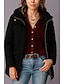Dam Fleece-jacka Sherpajacka Bekväm Andningsfunktion Dragkedja Ficka Ledigt Slät Semester Gata Ledigt Dagliga kläder Dragkedja Normal Huva Normal Långärmad Ytterkläder Svart Vin Kungsblå Vår Höst