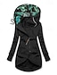 Dam Vinterjacka Fleece-jacka Håller värmen Lättvikt Mönster Fleecefodrad Vintage Dagligen Boho vintage Blommig Semester Ledigt Kort Huva Normal Långärmad Ytterkläder Grön Höst Vinter