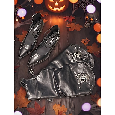 2-i-1-konvertibla klackar och stövlar för kvinnor med avtagbara dödskalleöverdrag - skor i gotisk punkstil för halloween, maskeradfester och mångsidigt streetwear-mode