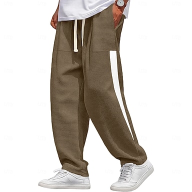 Herr Våffelstruktur Joggingbyxor Långbyxor Säckiga byxor Träningsbyxor med raka ben Snörning Elastisk midja Ensfärgat Komfort Fullängd Dagligen Utomhus Streetwear Semester Mode Blå Svart Elastisk