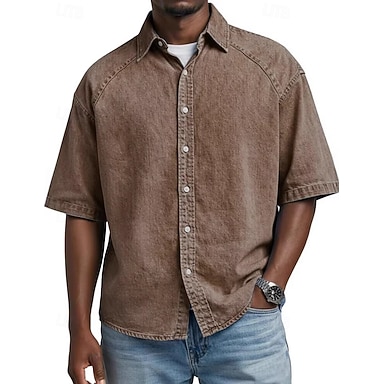 Herr Skjorta Button Down skjorta Casual skjorta Tvätta skjorta i 100 % bomull Svart Ljusgrön Rodnande Rosa Mörkgrön Purpur Kortärmad Slät Kavajslag Dagligen Utomhus Knappar Kläder Streetwear Ledigt