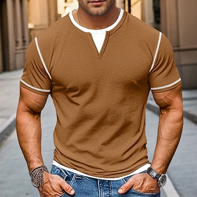 Herr Skjorta T-shirt med V-ringad Kortärmad tröja Kortärmad V-hals Sommar Vår Ensfärgat Lappverk Dagligen Ledigt Gatustil falska två stycken Utomhus Gata Casual Ljusblå Ljusgrön Mörkgrå Topp t-shirt