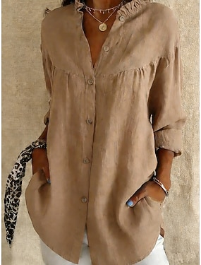 Dam Skjorta Casual skjorta Blus Konstbomullslinne Lappverk Knappar Slät Stylish Klassisk Modern Långärmad Hög krage Vanliga toppar Dagligen Helgdag Utekväll Svart Purpur Kaki Sommar Vår