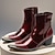 Herrstövlar i glänsande röd läder – elegant glansig finish med bekväm blockklack, snyggt val för julfester