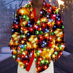 Jul Herr Julgran Polarsken Julkostym Skjorta Knapp upp skjorta Långärmad Rolig Utomhus Helgdag Vår Höst Nedvikt 3D-utskrift krage skjortor Blå 1# Blå Purpur Grön Mörklila