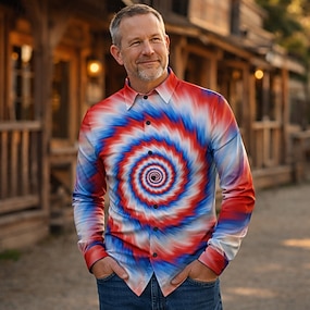 250-årsjubileum USA Retro / vintage 70-talet Skjorta Aloha skjorta Lång ärm Hippie Geometrisk Etnisk Maskeradkläder Herr Maskerad 4 juli Fest Självständighetsdagen Vuxna Skjorta