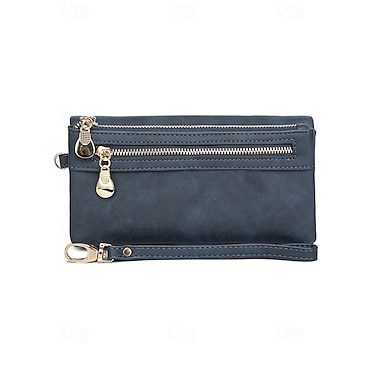 Lång plånbok i konstläder för kvinnor, handledsväska med flera kort och myntficka med dragkedja, smal kuvertväska i vintagestil, flerfärgad, för vardagsbruk, resor, shopping och presenter