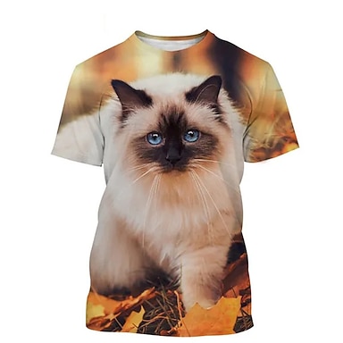 Herr Grafisk Djur Katt T-shirt T-shirts Kortärmad T-shirt 3D-tryck Rund hals Skjorta Vintage Mode Designer Utomhus Ledigt Dagligen Svart Gul Orange Vår & sommar Kläder S M L XL 2XL 3XL