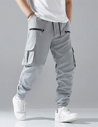 Herr Militärbyxor Långbyxor Snörning Elastisk midja Flera fickor Slät Bärbar Utomhus Dagligen Camping och vandring Mode Klassisk Svart Ljusgrå