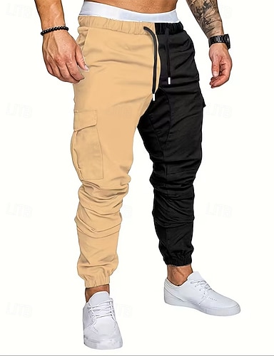 Herr Militärbyxor Joggare Långbyxor Snörning Ficka Elastisk midja Färgblock Komfort Utomhussport Dagligen Mode Ledigt Kaki Grå Microelastisk