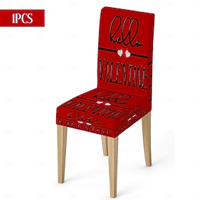 Stretchöverdrag till matsalstol för alla hjärtans dag, svartvitt buffelrutigt mönster med hjärta och rosett i ryggstödet, avtagbart och tvättbart vinteröverdrag för hem, restaurang, kök och vardagsrum
