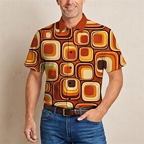 Retro / vintage Hippie 70-talet Skjorta Korta ärmar Hippie Geometrisk Maskeradkläder Herr musikfestival Fest Dagliga kläder Vuxna Skjorta Vår & sommar