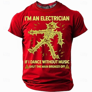 Herrars kortärmad elektriker grafisk T-shirt - Rolig 'Om jag dansar utan musik stäng av huvudbrytaren' arbetsplats humorte