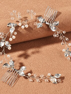 Hårkammar Huvudprydnad Huvudbonad Legering Bröllop Speciellt Tillfälle Bröllopsbrud Med Imiterade Pärlor Kristaller Strass Huvudprydnad Huvudbonad klä dig för att imponera