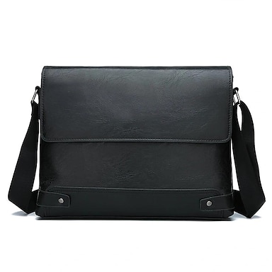 messengerväska i brun konstläder för män - klassisk crossbody-design med justerbar rem, perfekt för arbete eller resor
