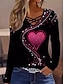 Dam T-shirt Hjärta Grafisk Vintage Stylish Klassisk Långärmad V-hals Vanliga toppar Dagligen Utklippt Mönster Rodnande Rosa Vår Höst