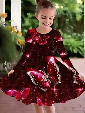 Flickor 3D Fjäril Klänning Långärmad Sommar Vår Semester Dagligen Helgdag Prinsessa Skön Ljuv Barn 4-12 år Vardagsklänning A linjeklänning Knälång Normal