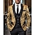 Herr Kavaj Festkvällskläder Affärskläder Festival Antik Elegant och lyxigt Vår Höst Polyester Blommig Mönster Modern Stil Skinande Enkelknäppt med Ett Knapphål Blazer Svart Vit Guld