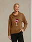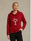 Julkvinnors jultomtehuva pullover hoodie sweatshirt grafik vin glas avslappnad långärmad huva långa toppar gatuliv avslappnad ficka tryck rosa vin grå höst vinter