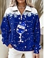 Jul Dam Blus Grafisk Snöflinga Vinglas Ledigt Långärmad V-hals Vanliga toppar Dagligen Lappverk Mönster Blå Svart Ljusgrön Rubinrött Höst Vinter