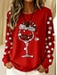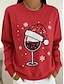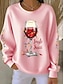 jul damtröja med grafisk motiv vinglas casual långärmad rund hals normal toppar gata vardagskläder casual lapptäcke svart rosa röd grön höst vinter