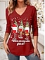 Jul Dam T-shirt Grafisk Jul Vinglas Elegant Vintage Mode Långärmad V-hals Vanliga toppar Dagligen Helgen Mönster Svart Rodnande Rosa Rubinrött Vår Höst Vinter